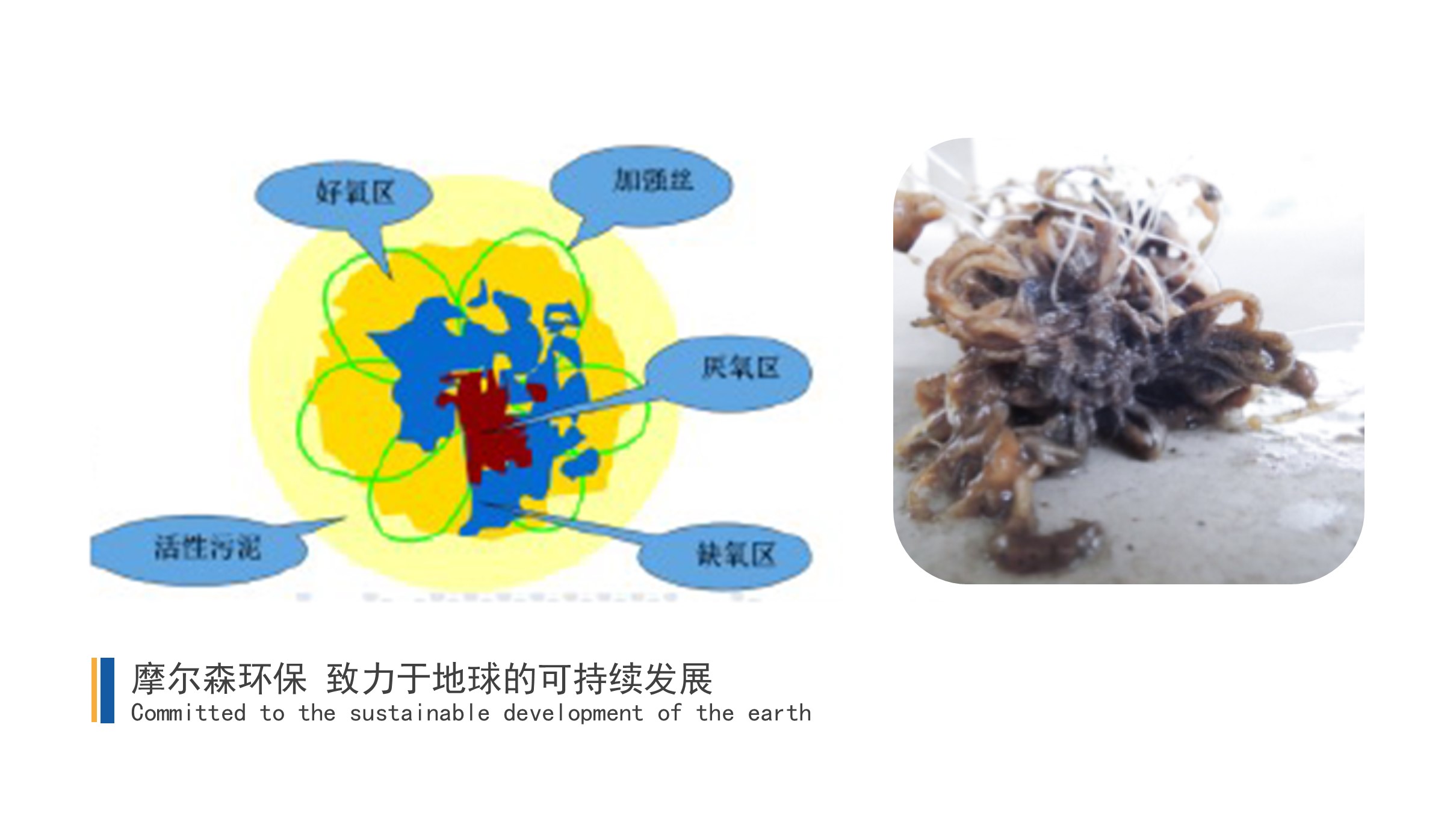 新型高效的脫氮生物填料是根據短程和同步硝化反硝化生物脫氮機理,根據污水中微生物的特性而開發的一種對硝化反硝化菌具有選擇固化作用的有機和無機結合的復合填料。該特殊的有機和無機復合材質組成,形成外層生物膜為好氧菌、中間為缺氧菌和內層為厭氧菌的獨特生物膜結構,利用自然形成的溶解氧梯度,形成很多個微小的A2O工藝段,發生短程和同步硝化反硝化作用從而去除總氮。
